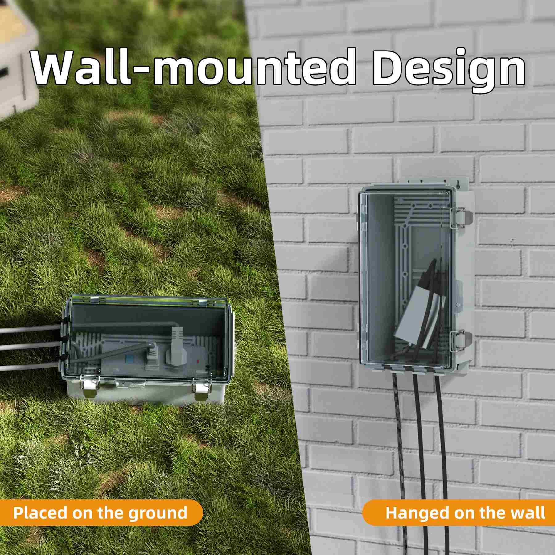 【Falra szerelt kialakítás】- A vízálló hosszabbító dobozt a sokoldalúsághoz tervezték, és könnyen felszerelhető a falra vagy a fára. Adaptálható kialakítása biztosítja a kényelmes telepítést, ahol csak szükséges.