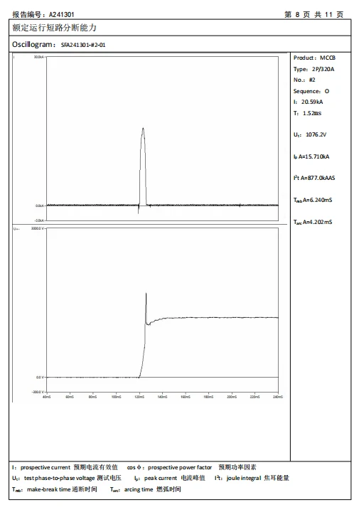 - Tesztelési feltételek: DC 1000V, 320A, szimulált rövidzárlati hiba.