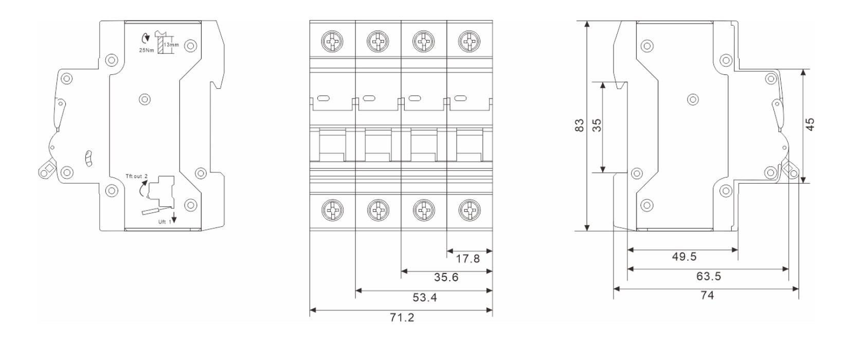A névleges rövidzárlat kapacitása (ICN) 6000a (≤40a-ban); 4500a (in = 50a/63a)